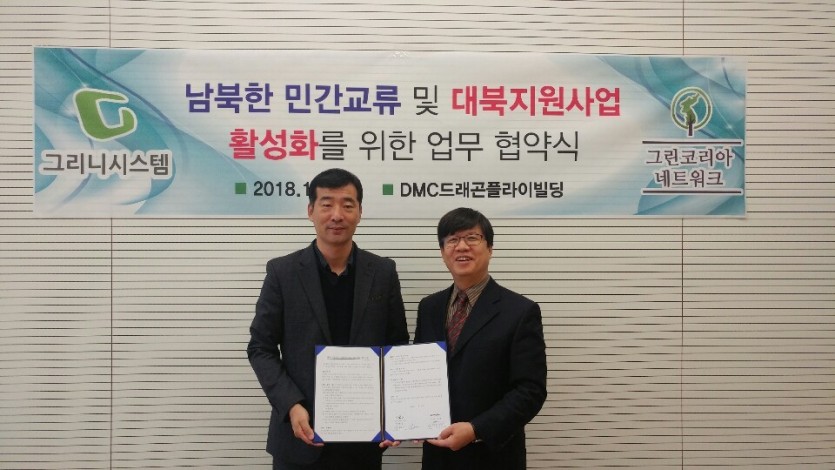 저희 그리니시스템은 북한 소외계층을 위해 대북사업을 진행하고있는 그린코리아네트워크와 인도적 지원사업과 개발협력 사업을 위해 협력하기로하였습니다. 앞으로도 그린코리아네트워크와 대북지원 사업 활성화를 위해 노력해 나가겠습니다. 감사합니다.